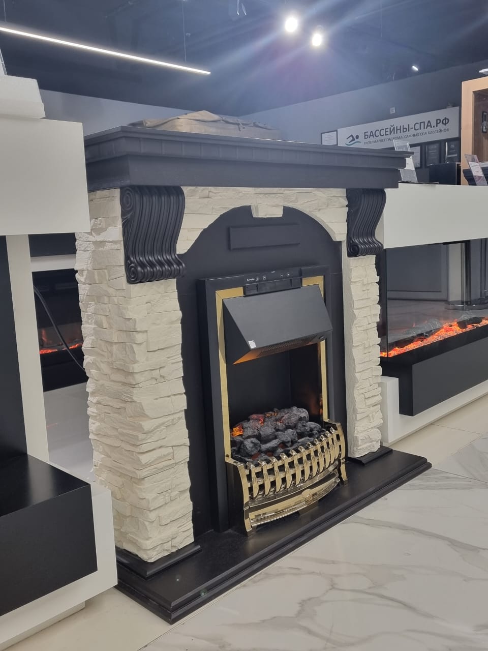 - Эффект пламени можно включить, не включая при этом обогрев. Просто представьте — в любое время года наслаждаться видом горящих дров!