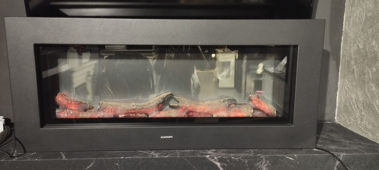 Дрова, находящиеся в очаге, создают эффект мерцания за счет встроенных в них светодиодов.