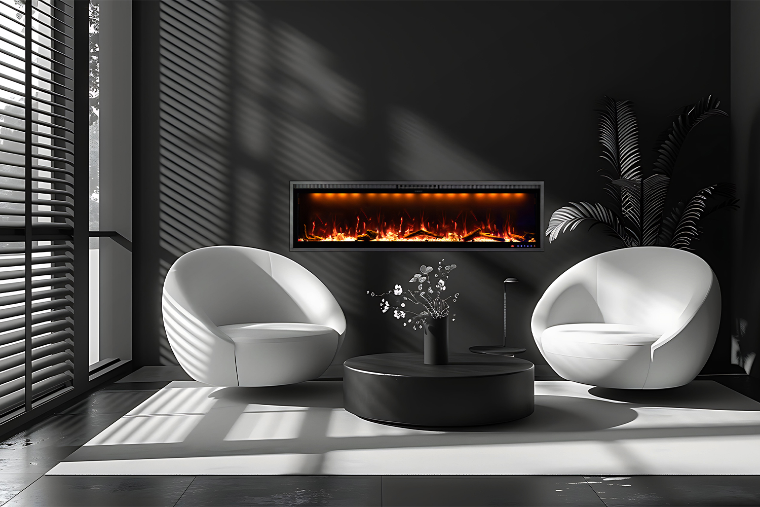 Очаг Mercury 60 LED RF из серии Mercury — это стильное и функциональное решение для современных интерьеров. Модель разработана для встроенной и настенной установки, предлагая элегантный дизайн и яркое оформление топочной корзины, что идеально передает атмосферу классического дровяного камина.