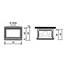 Закрытая топка со стальным корпусом и широким обзором огня. Очаг прямоугольной формы с чугунной футеровкой. Плавный подъем дверцы - гильотина. Топка может устанавливаться как с пристенной облицовкой, так и в угловой версии камина.