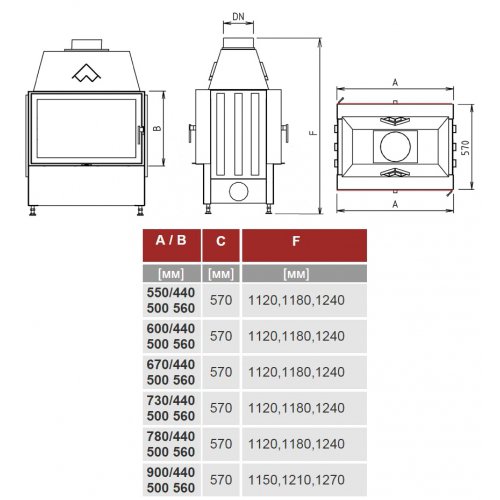 - Диаметр дымохода 180 мм