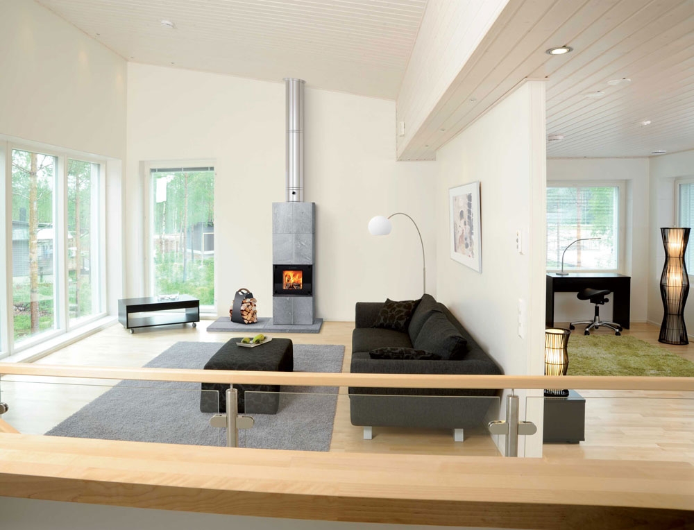 Красивый современный внешний вид модели Fidus 1 дополняется превосходными качественными, эксплуатационными и отопительными характеристиками. При тепловой мощности 35-41 кВт в час печь-камин достигает КПД в 88%. Во многом такие показатели достигаются благодаря талькохлориту, из которого сделана облицовка: этот камень обладает высочайшими показателями теплоаккумуляции, термостойкости, равномерной отдачи тепла в помещение в течение многих часов после окончания горения дров.