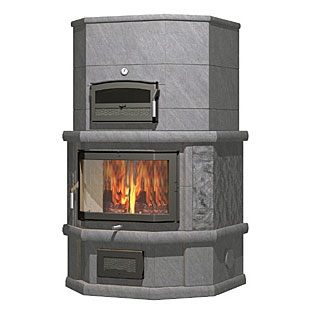 Каминная печь с духовкой DUO. Заднее нижнее подключение дымохода.