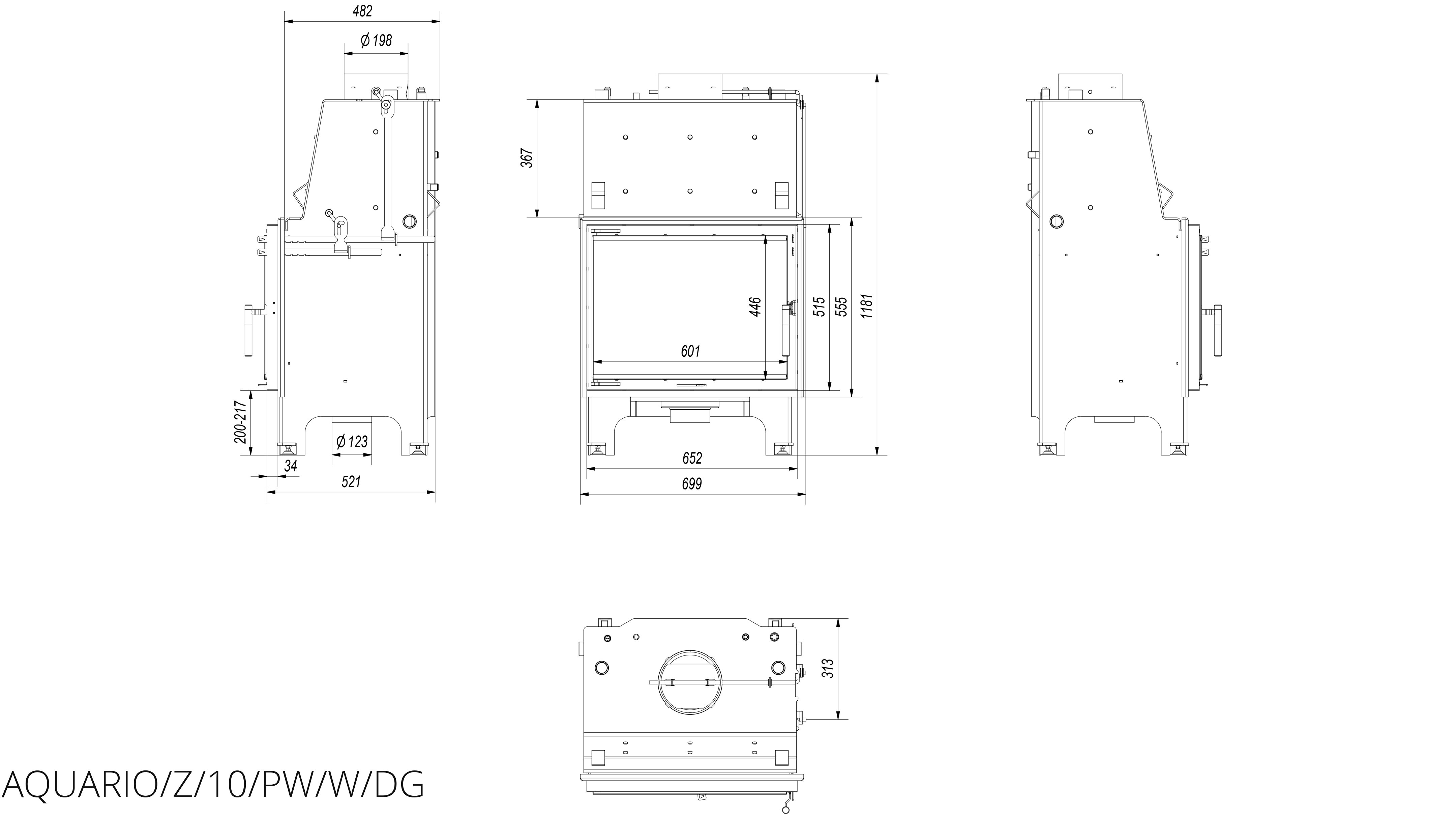 Каминная топка Kratki Aquario/Z/10/PW/W/DG
