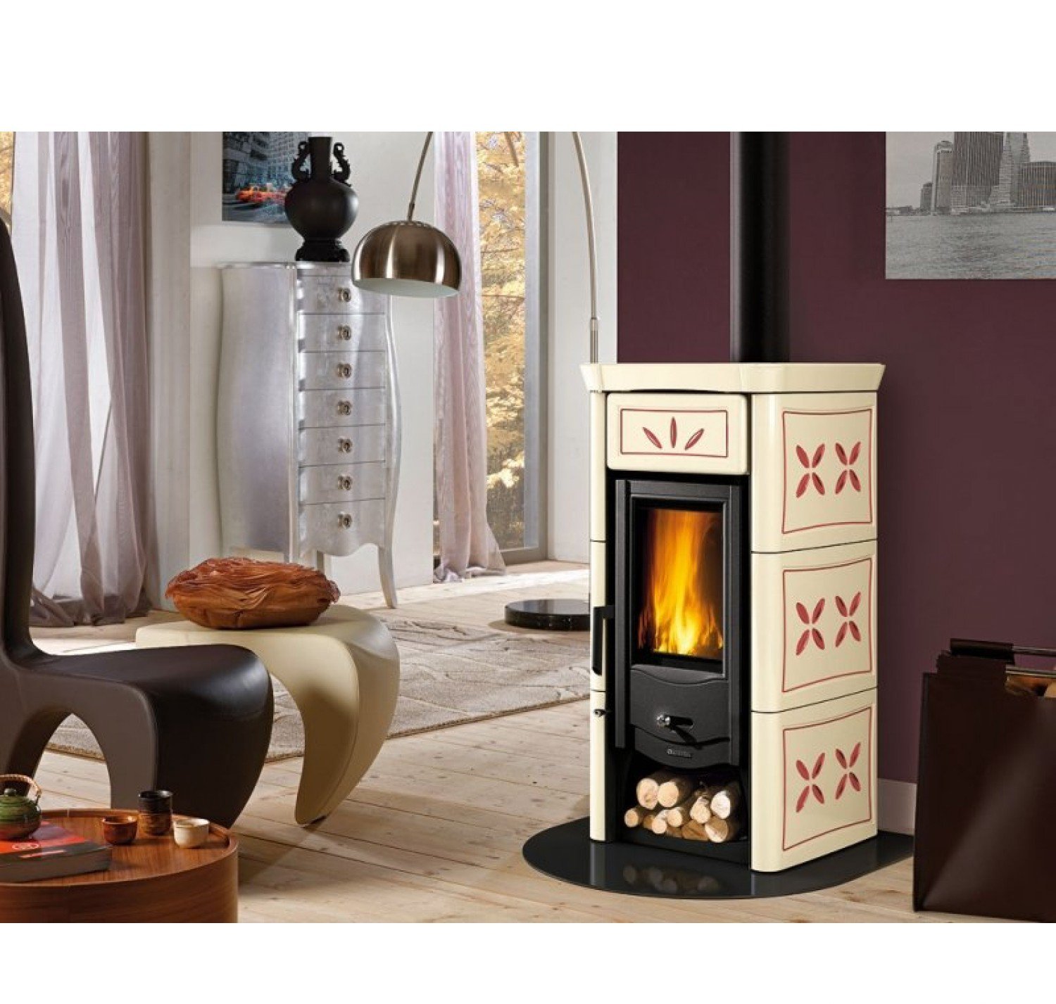 Такой эффект достигается при помощи изысканной облицовки керамической плиткой – майоликой. Печь-камин La Nordica Lucy выполнена из прочного и устойчивого к действию температуры чугуна. Топка закрытого типа. Тепло распространяется в нескольких направлениях. Практичная дверца оснащена стеклокерамикой, со способностью противодействия жару, не превышающего температуры в 750 градусов. Автоматическая подача воздуха удаляет наименьшие следы копоти, и сажи с поверхности стекла.